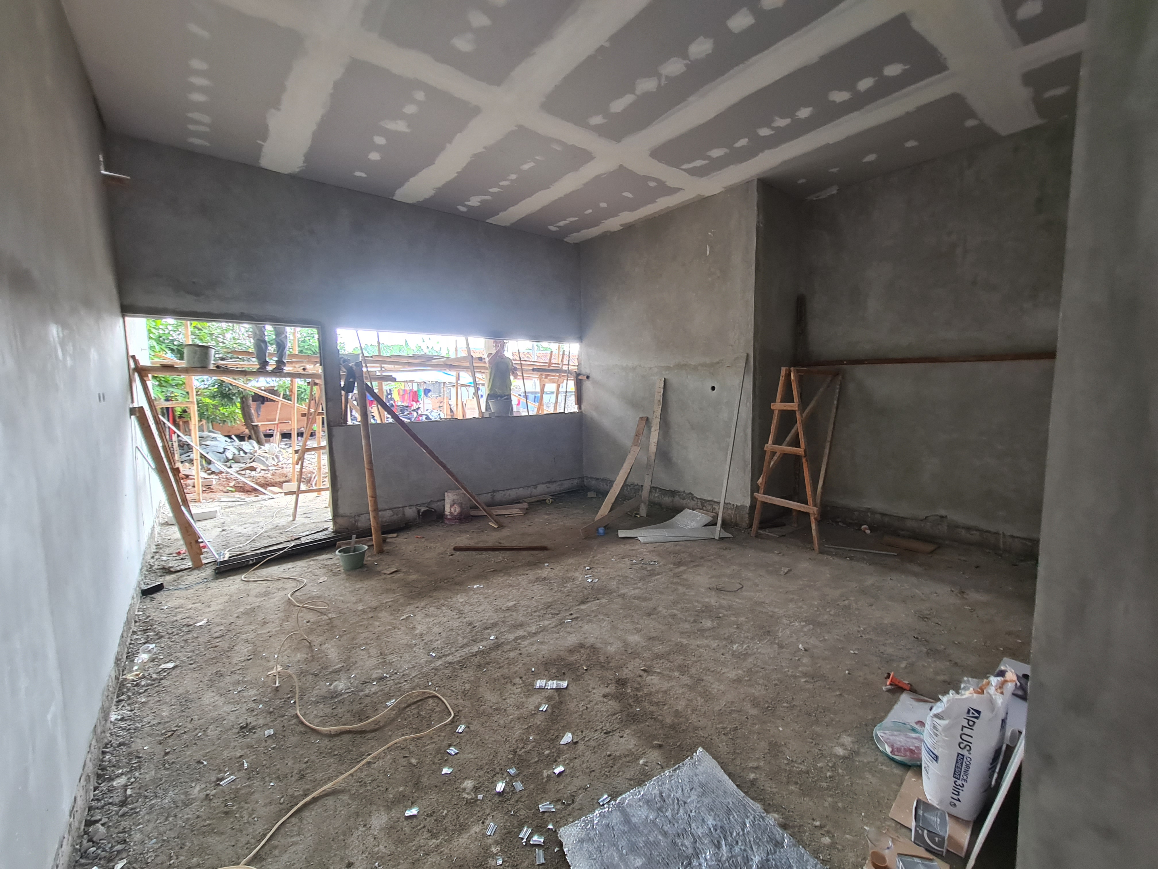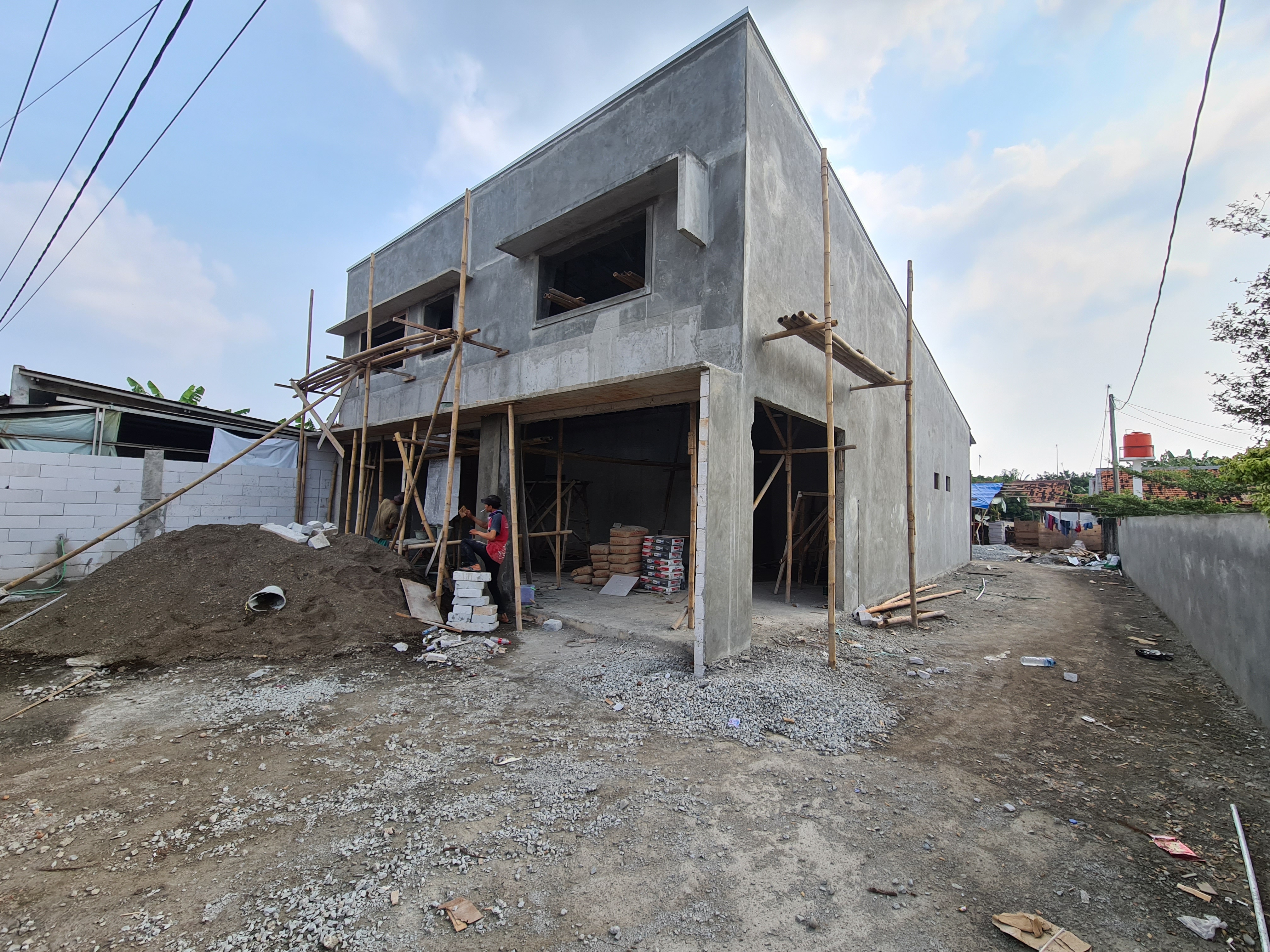 Spesifikasi Bangunan : Pondasi Tapak + Batu Kali, Struktur Beton Bertulang (besi 10 ulir) Dinding Hebel Leichtbric, Plester MU, Acian MU, Tanah di Stamper Kuda + Basecourse 10cm Stamper Kodok, Lantai Vinyl Taco + Granit Roman, Plafond Gypsum + PVC Shunda Premium, Jendela + Pintu Kaca Tempered 12mm, atap Trimdeck 0.35mm + Flashing, Rangka Baja Ringan Taso C75, Cat Jotun.