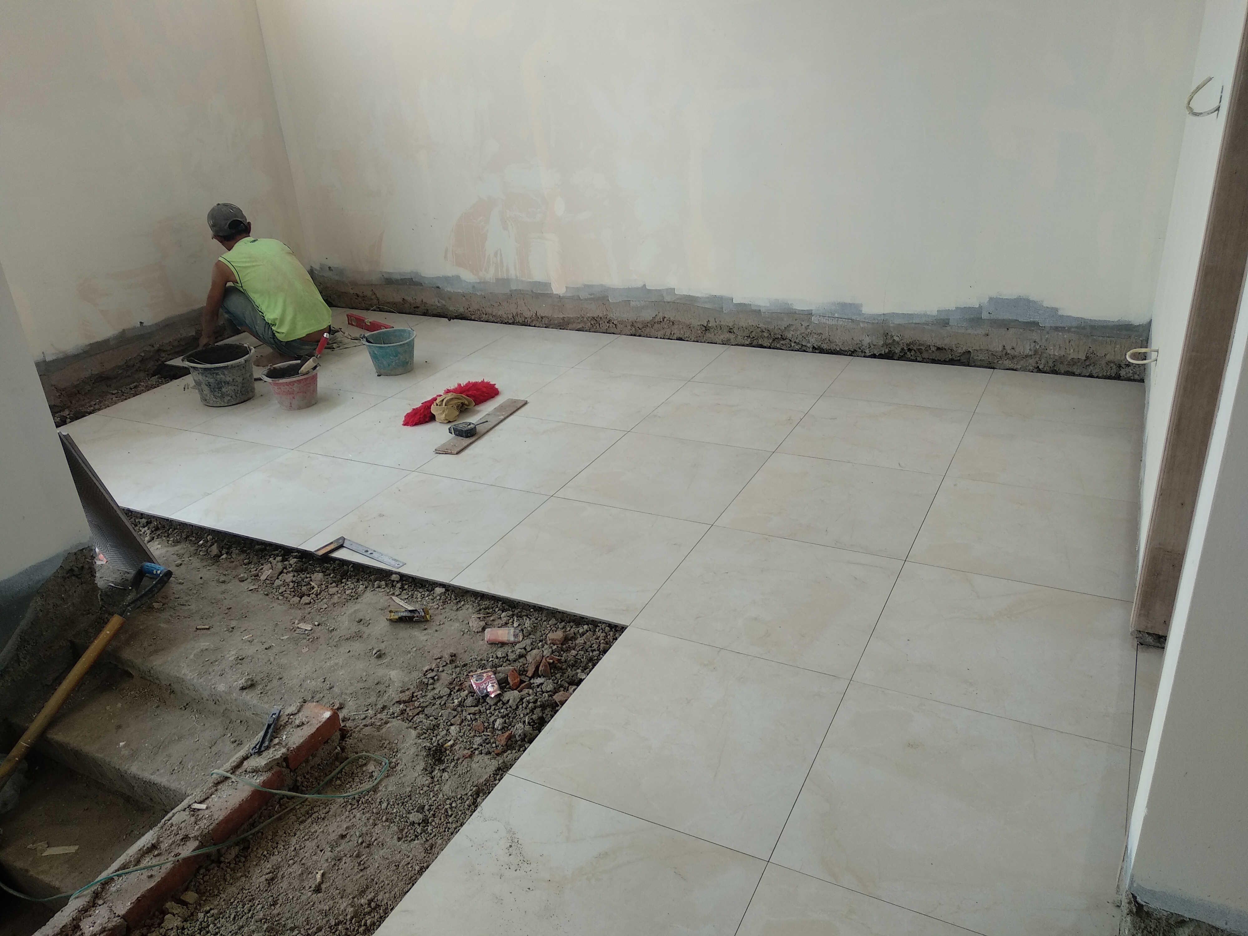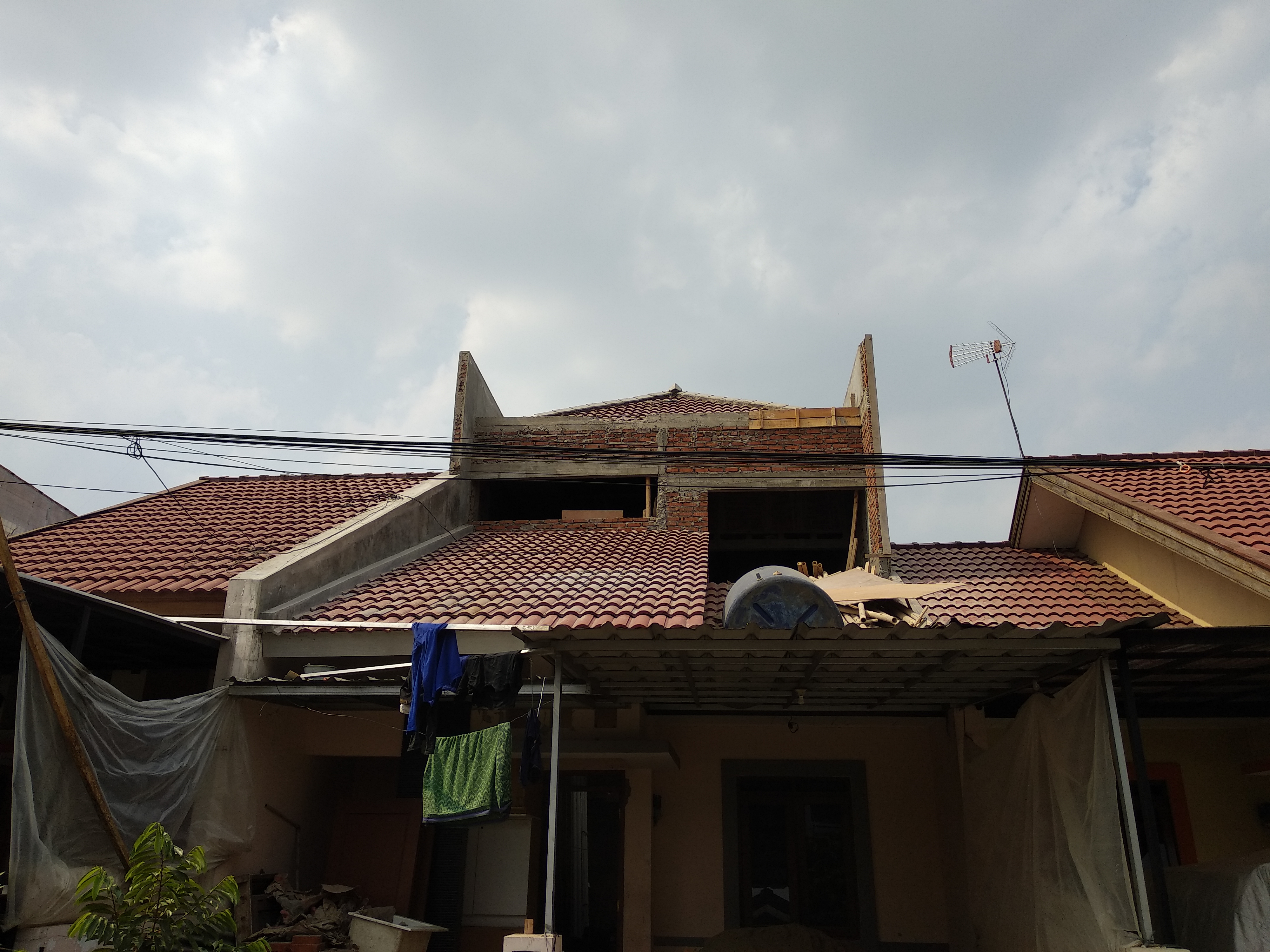 Pekerjaan yang kami lakukan meliputi : pembongkaran bangunan lama, penambahan pondasi dan struktur untuk dak lantai 2, pengecoran dak lantai 2, pekerjaan plafond (shadow line dan drop celling), penggantian keramik menjadi granit, renovasi kamar mandi, pengubahan dinding ruangan, penggantian atap, kusen alumunium, pengecatan, kanopi, dan pagar.