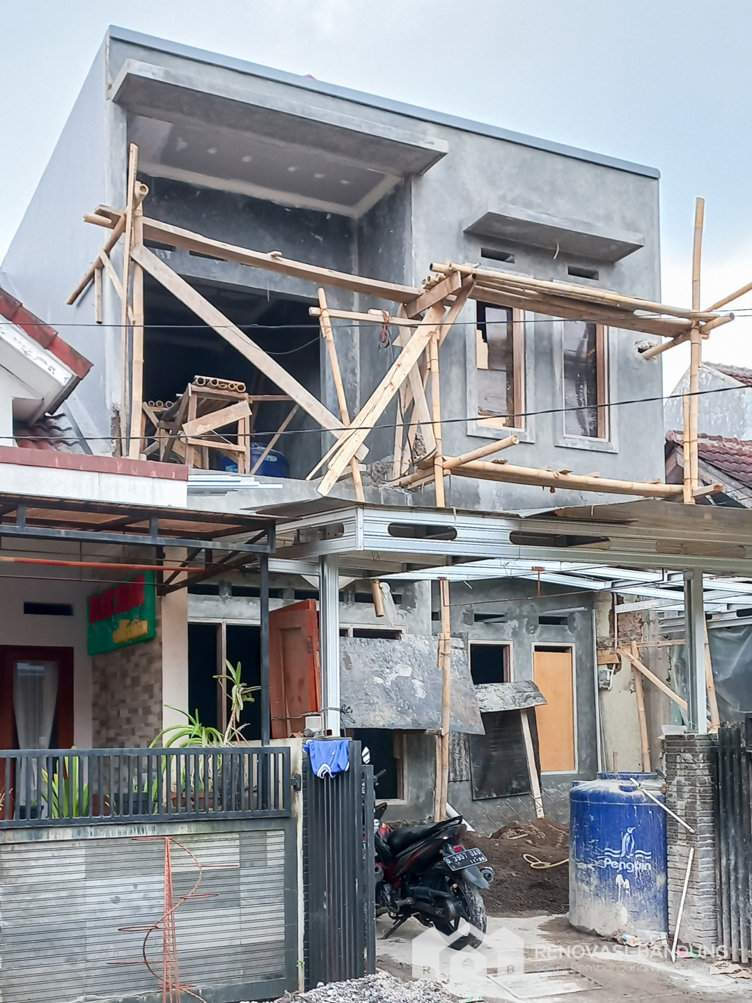 Berdiri di tanah berukuran 90m2, kami mengerjakan : Penggantian Granit lantai 1, Penyuntikan Struktur, Pemasangan Kusen Kayu dan Alumunium, Pemasangan Rangka Atap Baja Ringan, Pemasangan Genteng Beton, Dak Lantai 2, Pemasangan Sanitair (Bathtub, Shower, Kloset, Washtafel), Pemasangan Railing Tangga, Kithcen Set HPL, Pemasangan Plafond, Pengecatan.