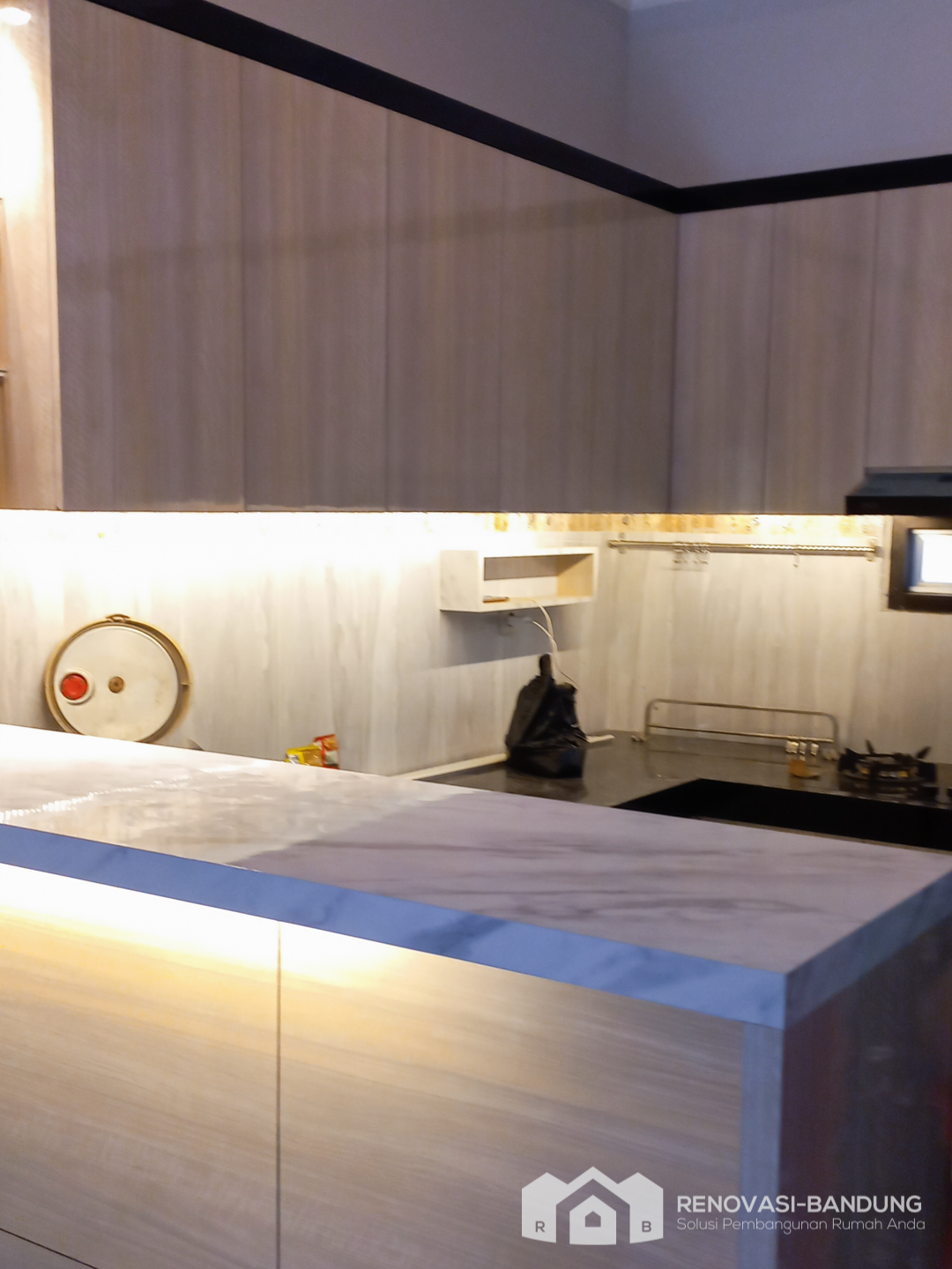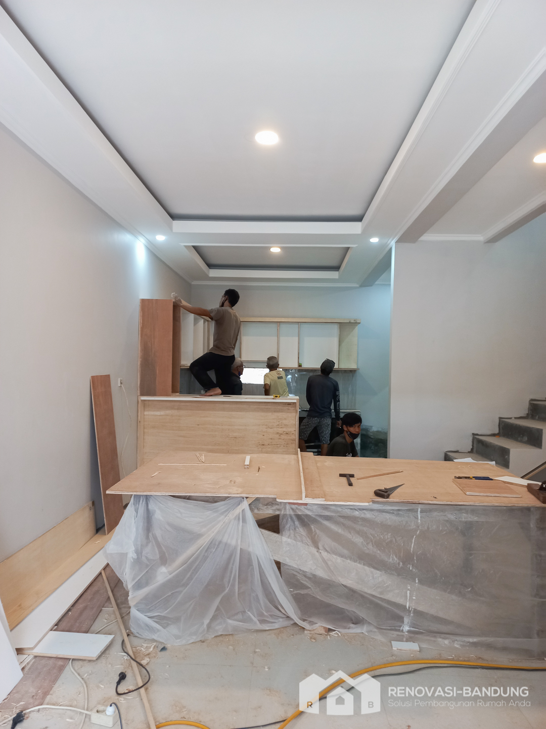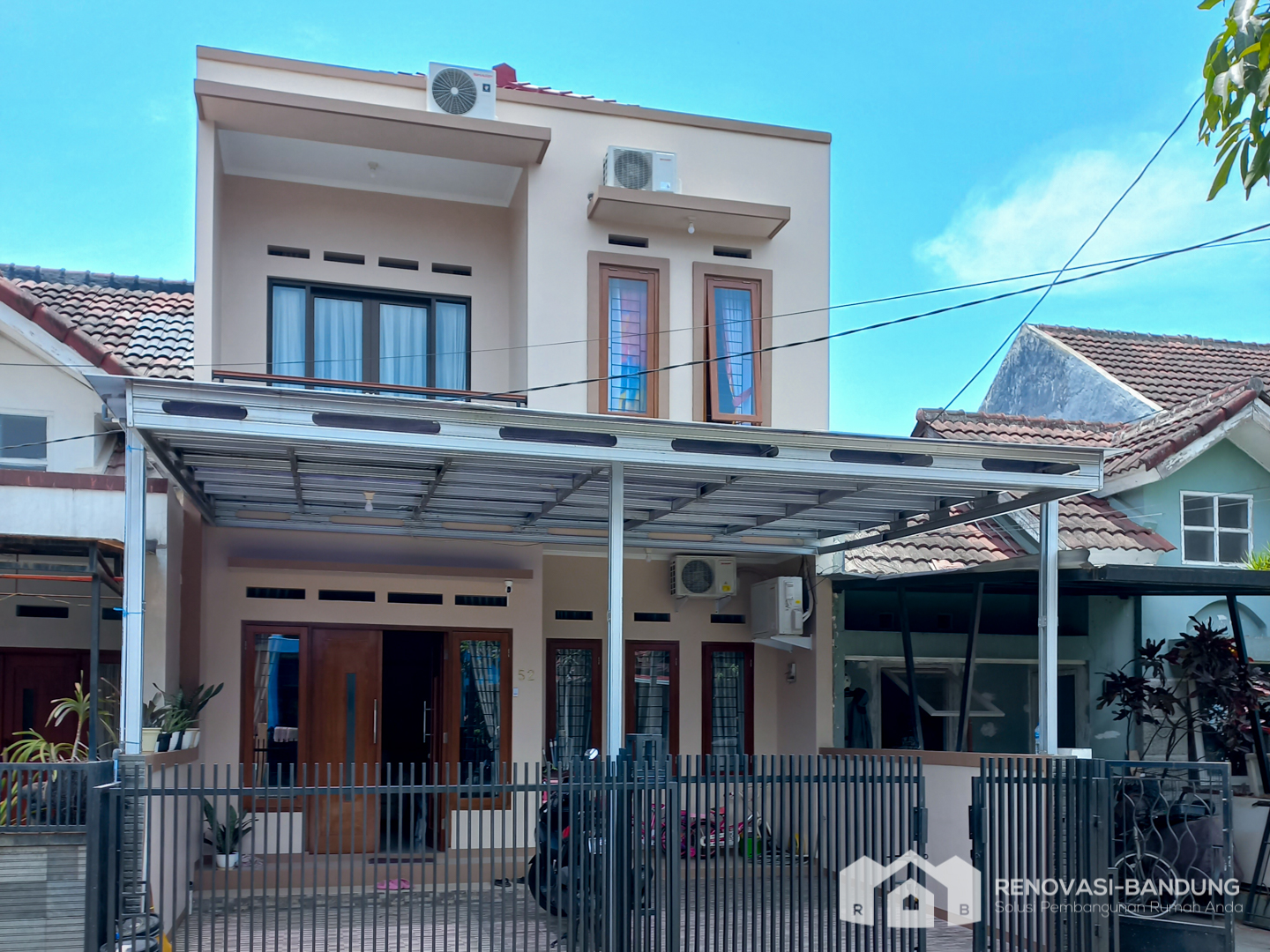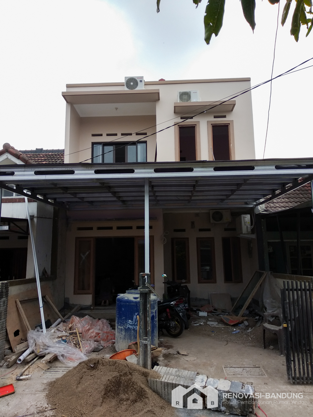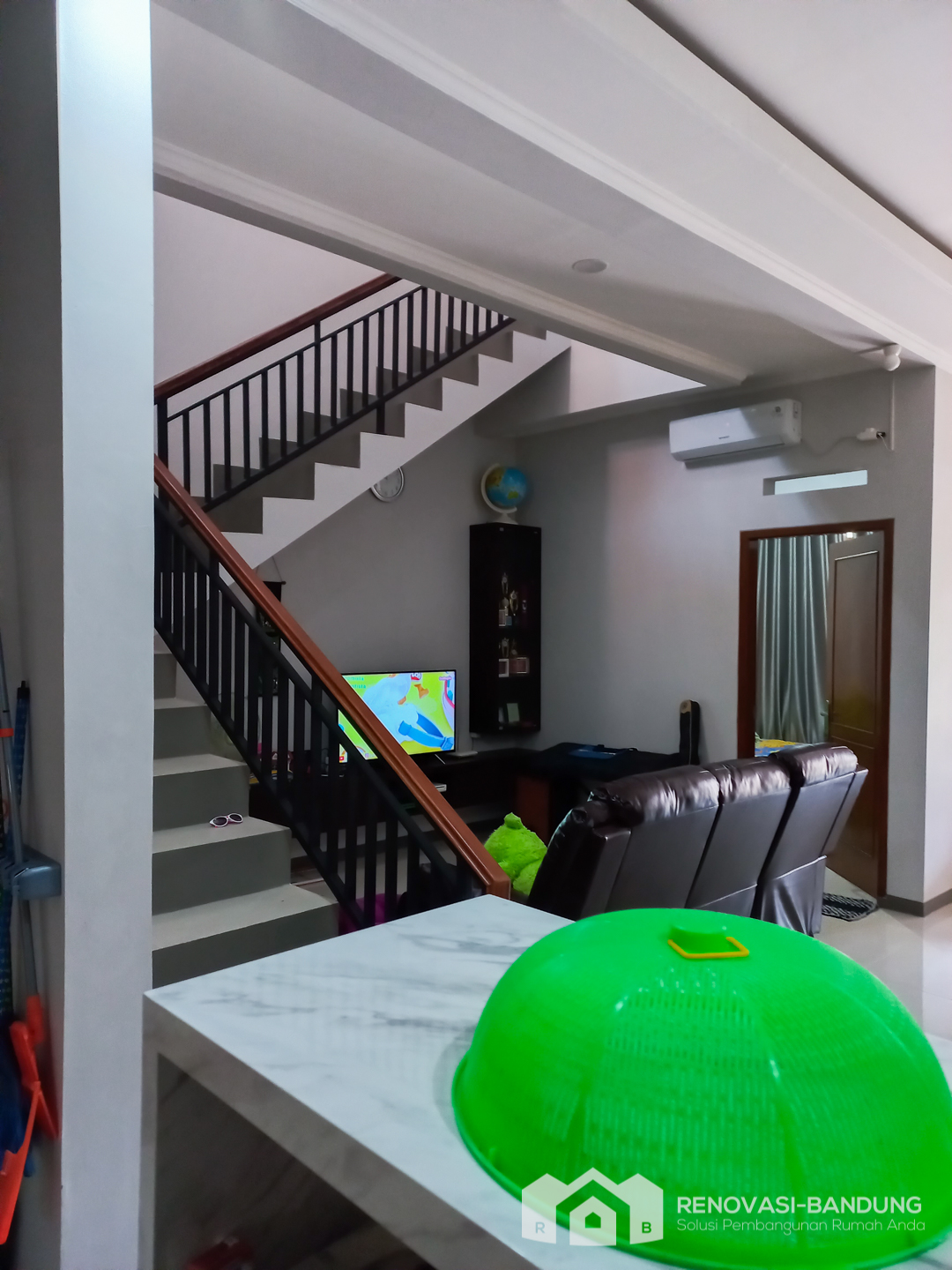 Renovasi Rumah Tinggal di Gedebage, Bandung. Klien melakukan renovasi total sekaligun penambahan lantai 2. Ruangan di lantai 1 pun banyak di alih fungsikan, hanya menyisakan 1 kamar dan 1 kamar mandi, sehingga memperluas area dapur, ruang tamu, dan ruang keluarga.