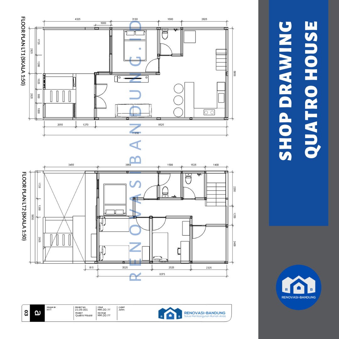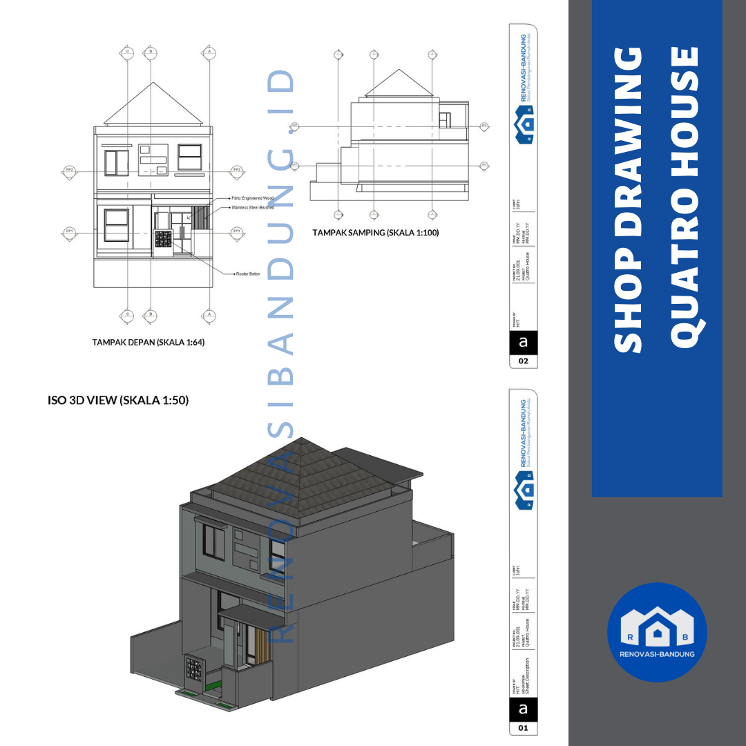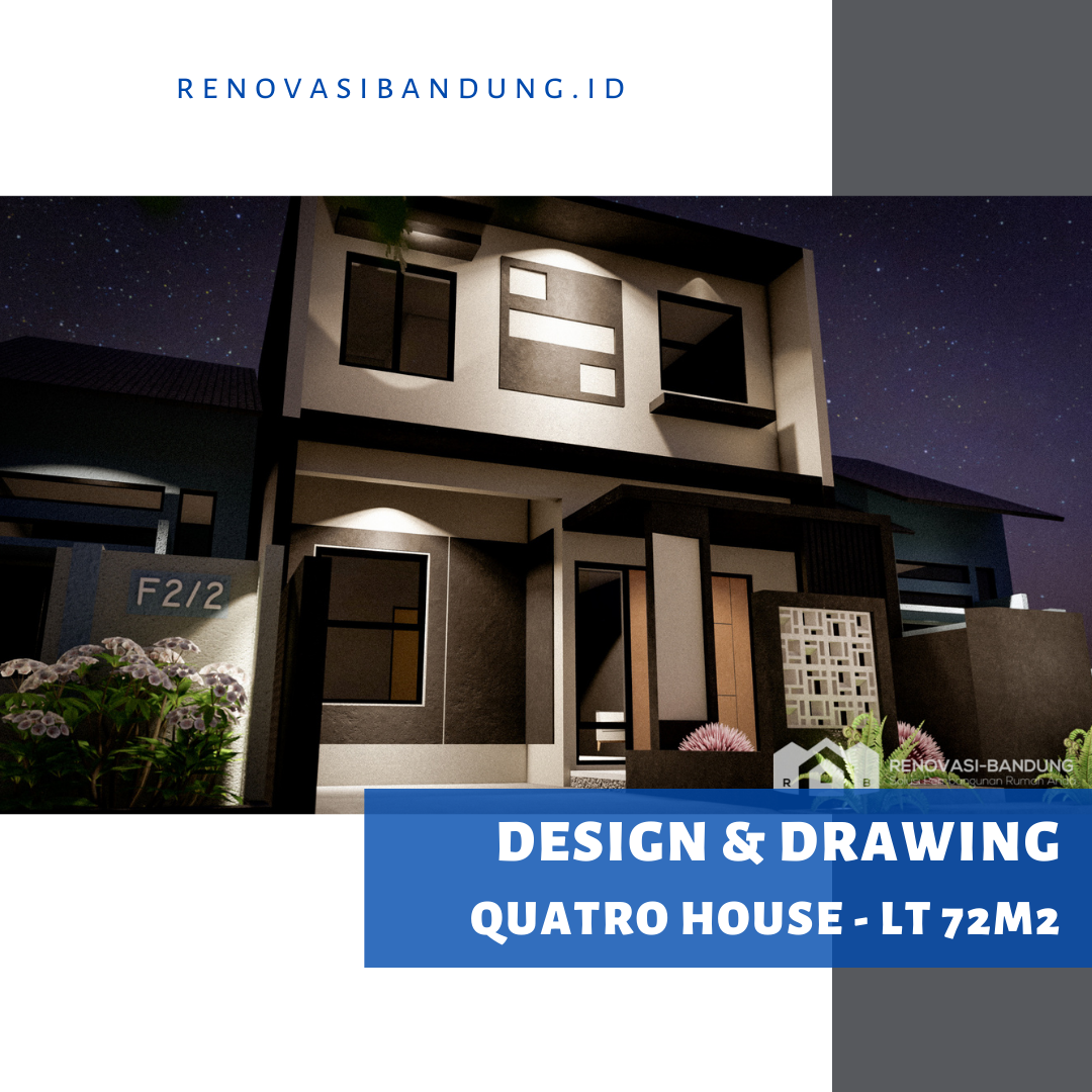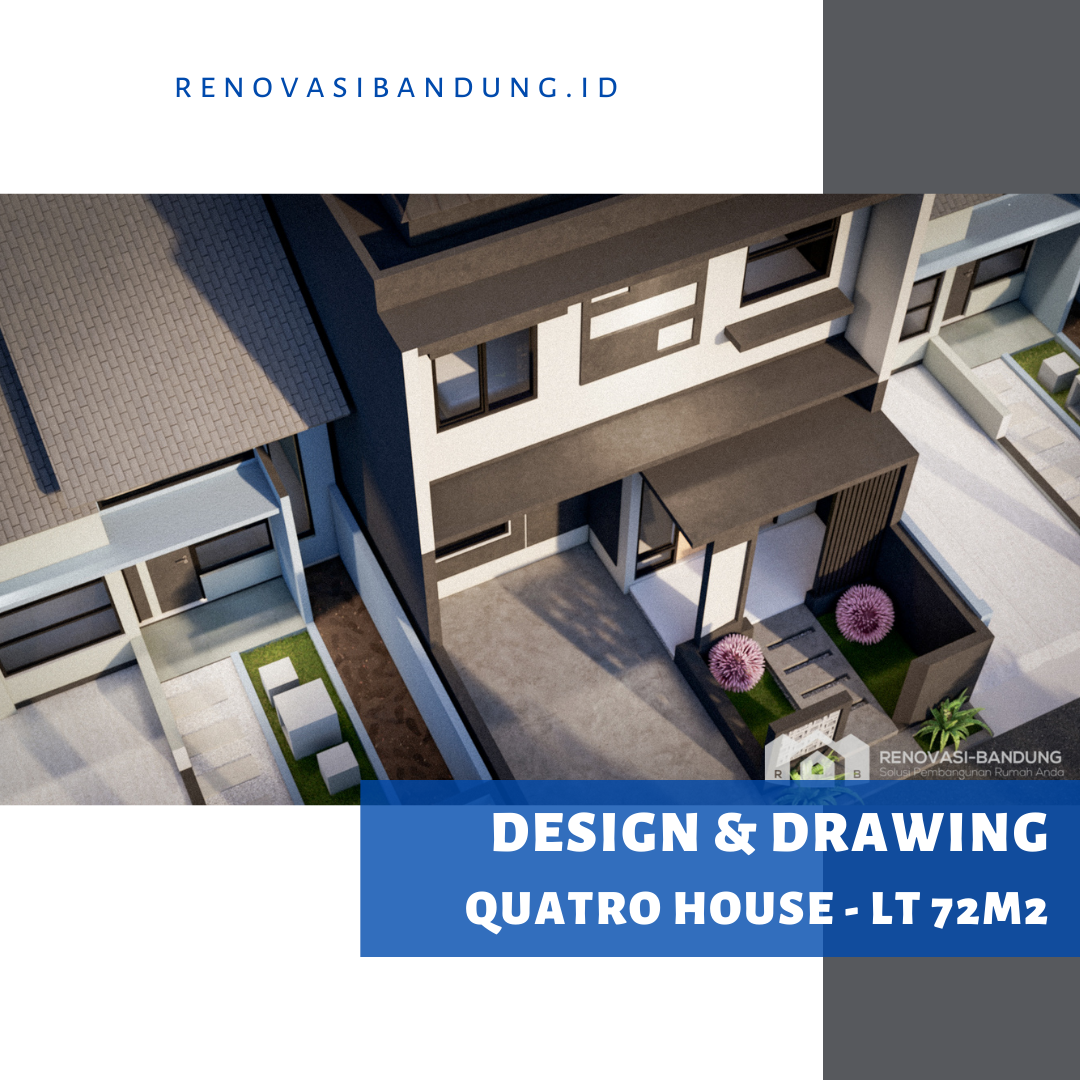 Kami beri nama Quatro House karena rumah ini memiliki 4 kamar tidur, 4 opening untuk jendela di depan, desain yang serba segi empat, dan aksen roster di depan berjumlah 4×4.