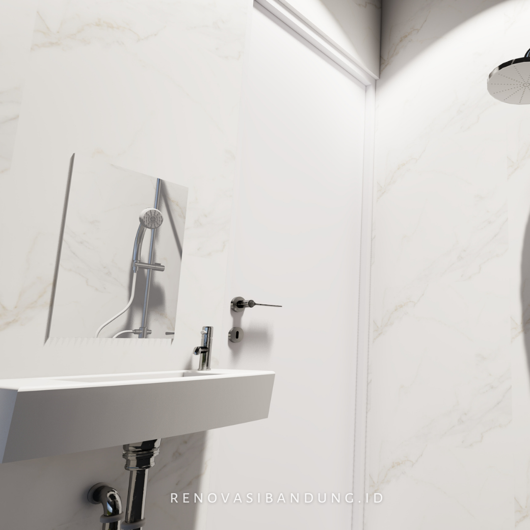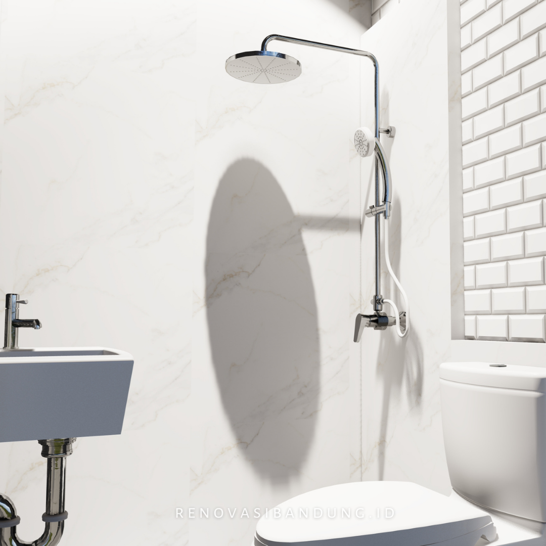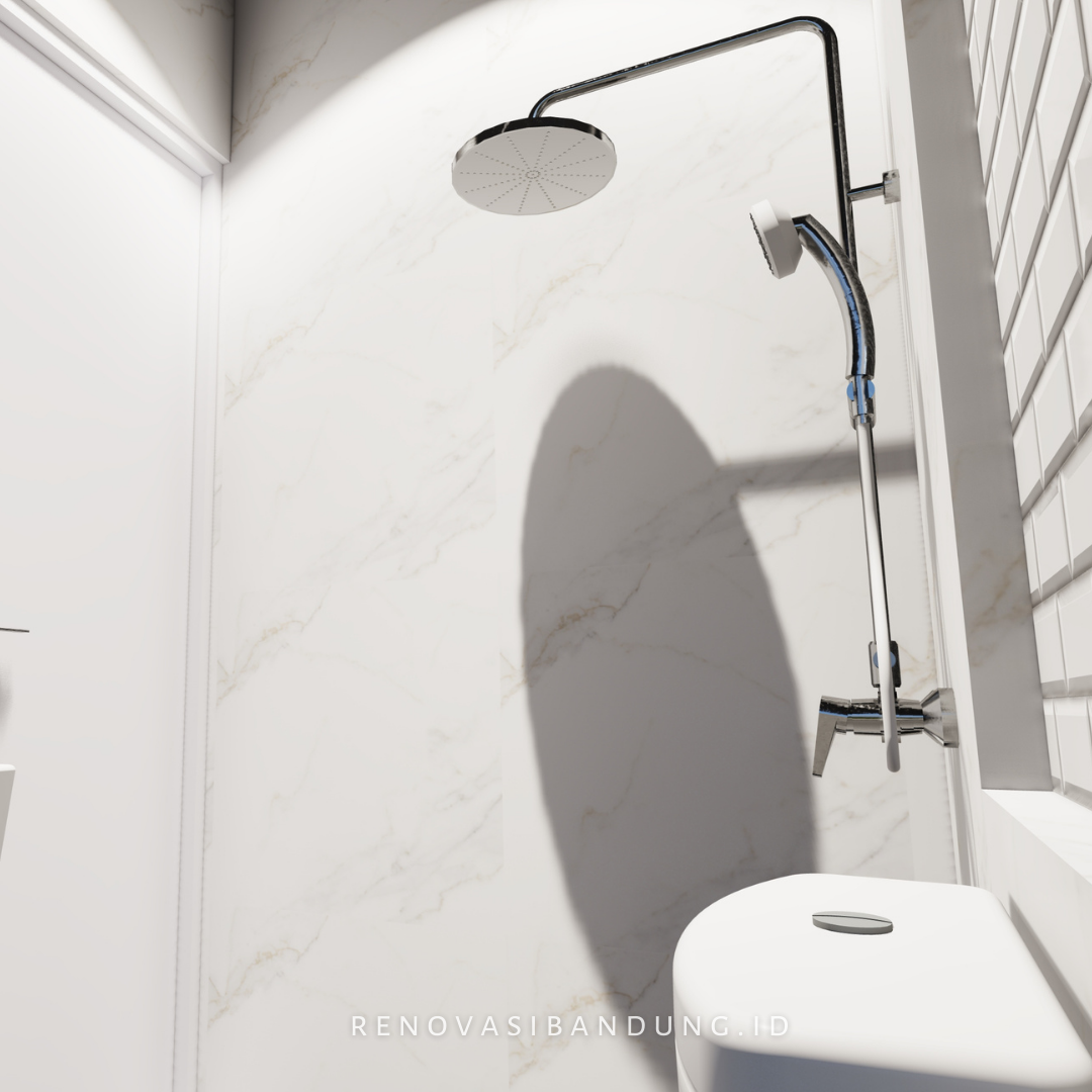 Walaupun ukurannya ga besar, palet kamar mandi ini udah termasuk : kloset TOTO, washtafel TOTO, Shower Rain Shower + Hand Shower, Water Heater, Keramik lantai dan dinding.