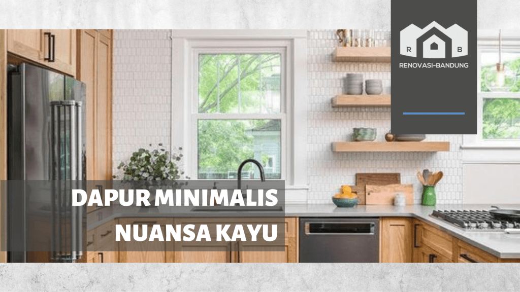 Desain dapur dengan nuansa kayu bisa menjadi pilihan untuk menambahkan kesan menarik tanpa menghilangkan kesan minimalis. Cukup padukan motif kayu dan warna putih pada area memasak. Hasilnya adalah nuansa alami yang mampu memanjakan mata.