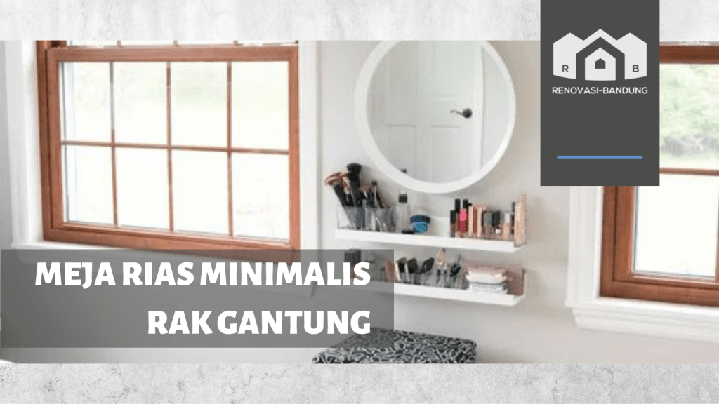 Tidak memiliki kaki meja, desain meja rias gantung ini hanya menggunakan 2 item yakni rak gantung dan cermin yang ditempatkan di bagian dinding. Dalam memilih rak gantung, upayakan pilih yang dilengkapi dengan laci penyimpanan untuk menyimpan produk kosmetik dan skincare kamu.