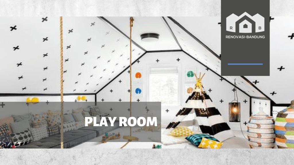 Memiliki anak kecil di rumah tentu akan menyimpan mainan yang tidak sedikit. Manfaatkan loteng rumah untuk meletakkan mainan si kecil dan fungsikan ruangan ini menjadi tempat bermain anak. Sediakan TV dan aneka ragam bantal serta kursi lesehan dengan karpet. Agar loteng terkesan lebih ceria, gunakan warna terang seperti putih, kuning, dan merah pada interior ruangan ini.