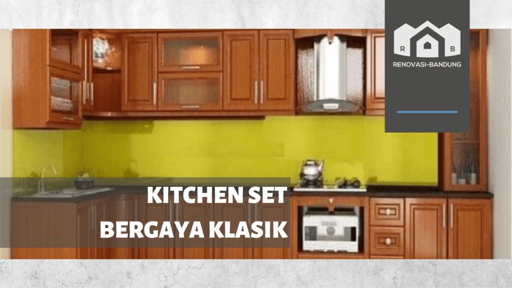 Model kitchen set bergaya klasik ini masih cukup sering di temukan pada hunian rumah loh. Desain kitchen set satu ini identik dengan hiasan berupa kabinet yang berwarna coklat tua dengan ukiran yang khas seperti zaman dulu. Jika Anda memiliki atau berniat untuk memilih model kitchen set bergaya klasik tentu hal tersebut adalah sebuah ide yang cukup menarik untuk diterapkan pada hunian.