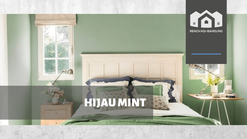 Pilihan warna hijau satu ini dapat menciptakan ketenangan dan kenyamanan pada interior kamar tidur adalah hijau mint. warna cat tembok dengan nuansa hijau mint dapat membantu akan menciptakan suasana yang menyegarkan, terutama di kamar tidur. Warna dinding satu ini juga dapat memberikan kesan vintage pada kamar tidur. Untuk menambah kesan tersebut, perlu didukung dengan berbagai furnitur kontemporer yang terbuat dari kayu.