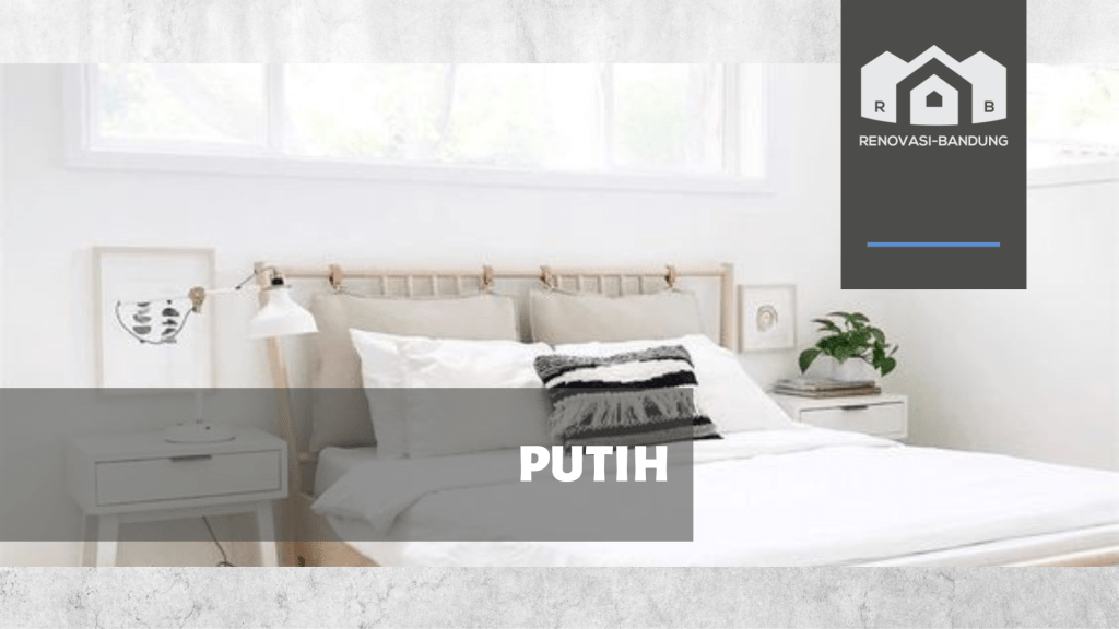 Warna putih adalah warna paling netral dan umum digunakan sebagai cat dinding hunian. Warna ini biasanya melambangkan kesucian, kedamaian, dan kepolosan. Lembut dan halus, warna cat putih yang hangat dapat menyelimuti kamar tidur dalam suasana yang nyaman. Gunakan warna yang menenangkan pada dinding dan trim untuk membantu ruangan terasa tenang dan luas.