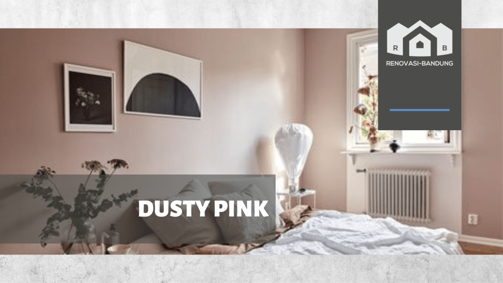 Berbeda dengan warna merah muda pada umumnya yang kadang sangat mencolok, warna dusty pink terkesan lebih dewasa, kalem dan modern saat hadir sebagai elemen warna di rumah. Warna dusty pink seperti warna bubuk atau warna mawar dapat dengan mudah menciptakan skema yang lembut. Penggunaan warna dusty pink pada kamar tidur karena dapat memberikan ketenangan untuk kamu ketika tidur.