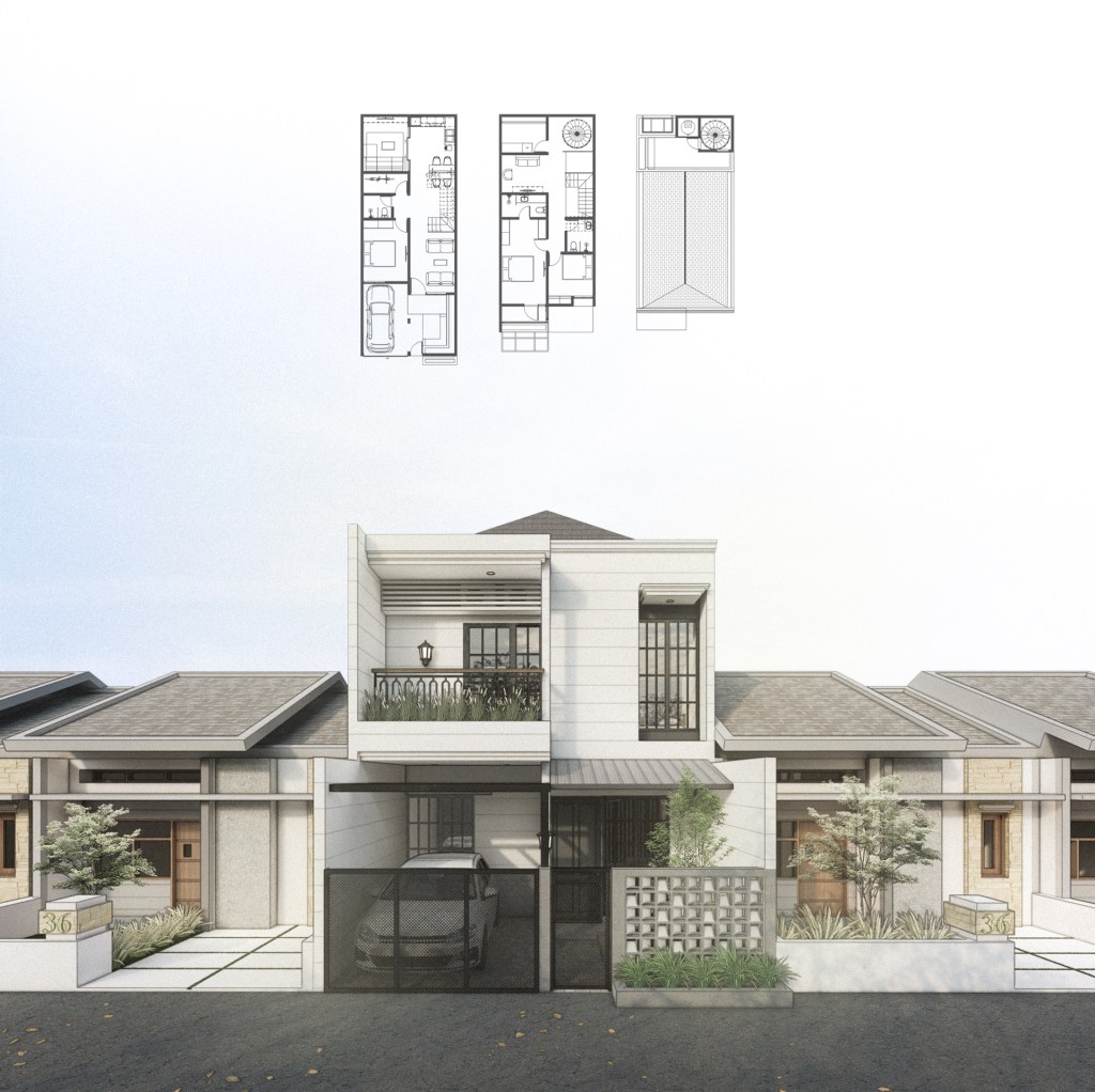 Pada project ini, klien ingin menambah kebutuhan primer berupa kamar tidur dan keinginan ruang tambahan berupa roof top. Layout lantai 1 tidak banyak diubah agar budget tidak membengkak. Request lain dari klien, ingin membuat rumah bernuansa cafe, maka didesain 2 area santai di teras depan dan area rooftop untuk mewadahi keinginan klien seperti barbeque, menerima tamu, atau bersantai.