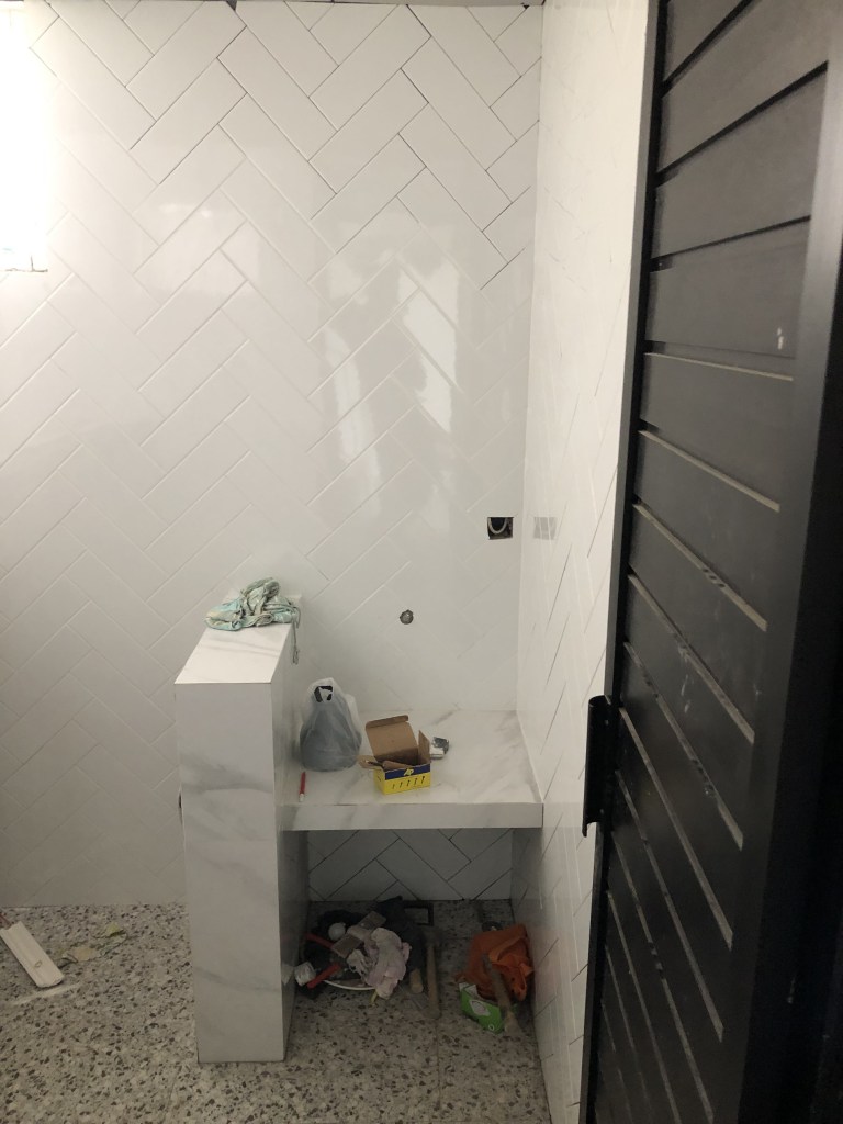Selain garasi, area kamar mandi juga mengalami perombakan total.