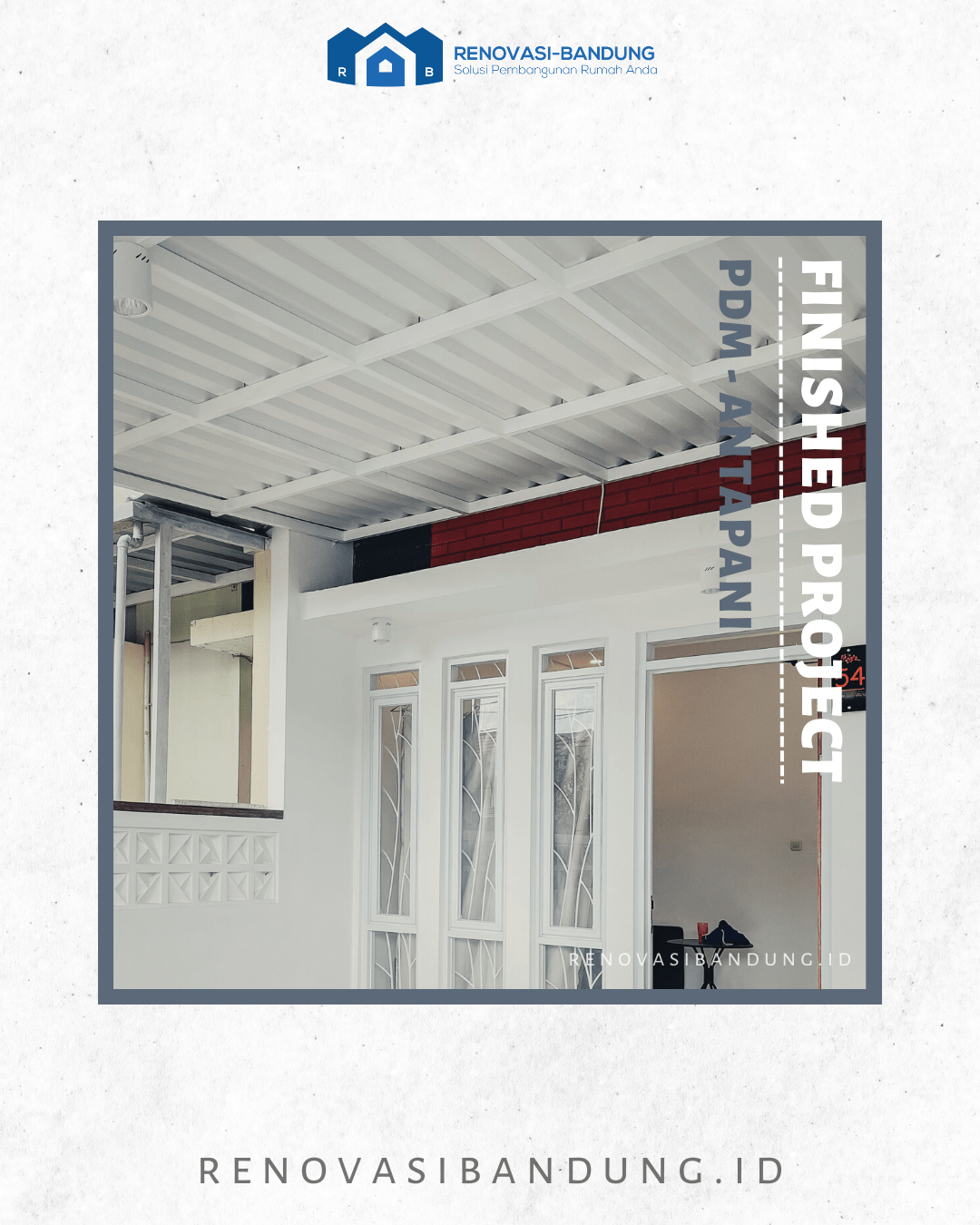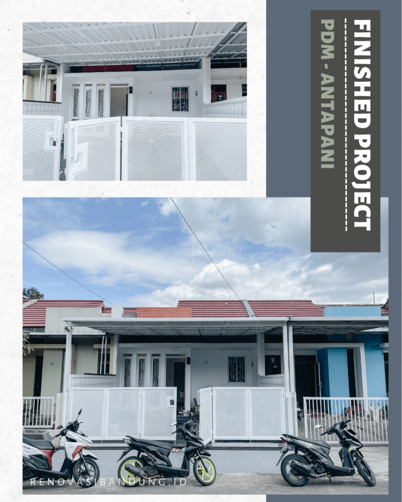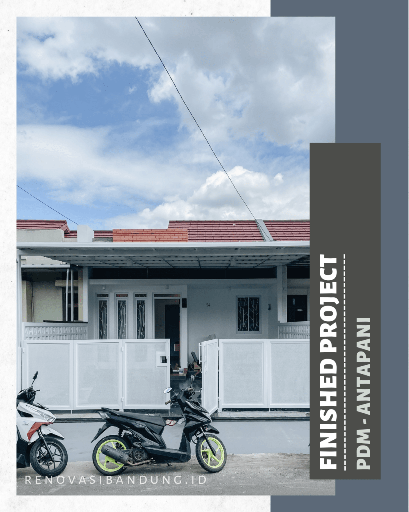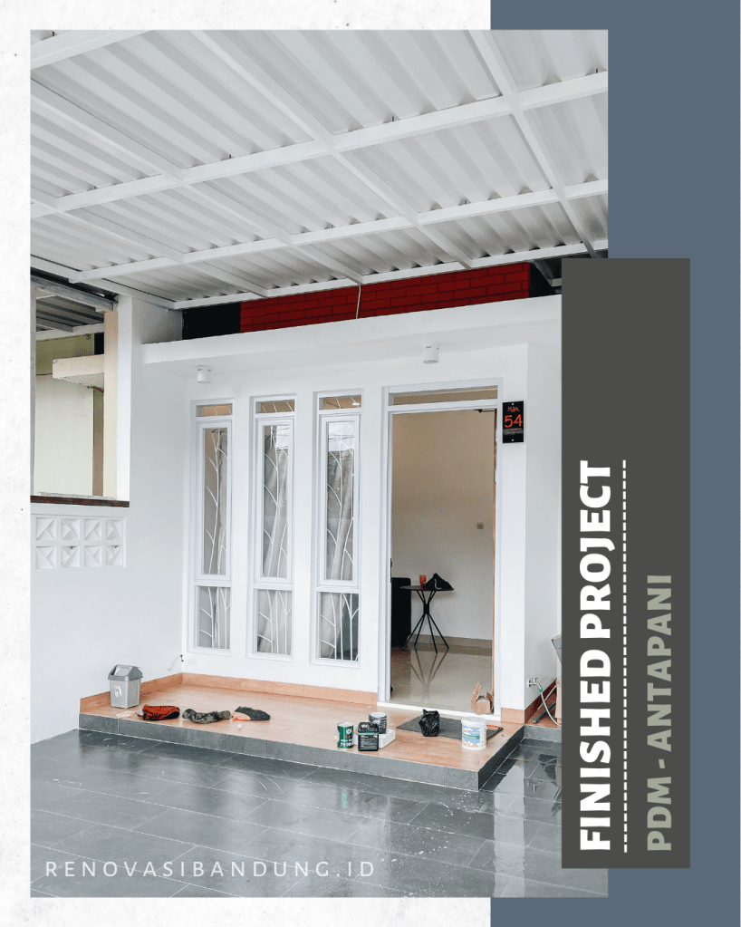 Tim @renovbandung melakukan pekerjaan penambahan 1 kamar, perubahan layout, dak beton torn, pemasangan vinyl dan keramik, modifikasi garasi, pembuatan dapur, penggantian kusen di depan menjadi alumunium, kanopi Alderon Twinwall depan, dan Solarflat 3mm sebagai masuk nya cahaya natural.