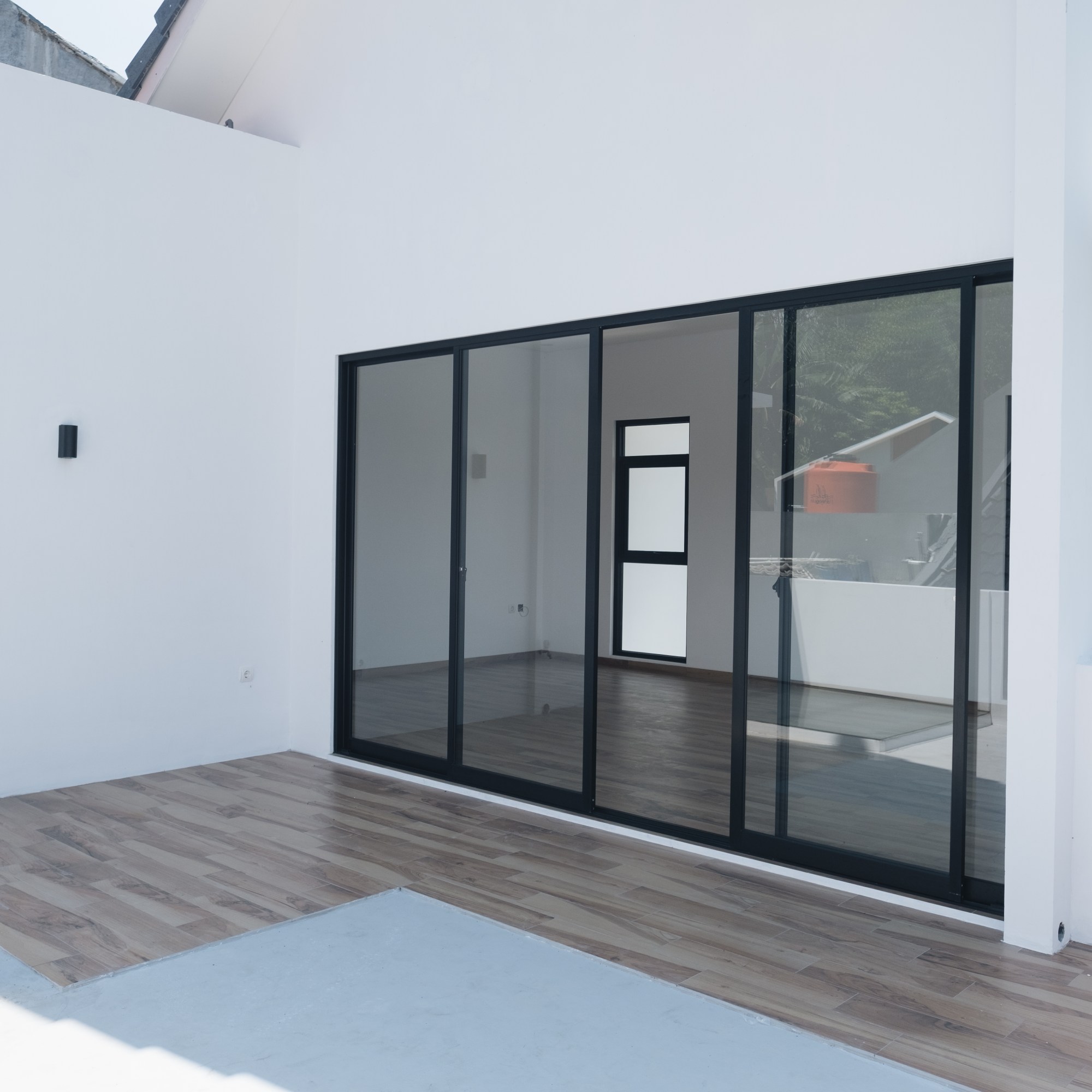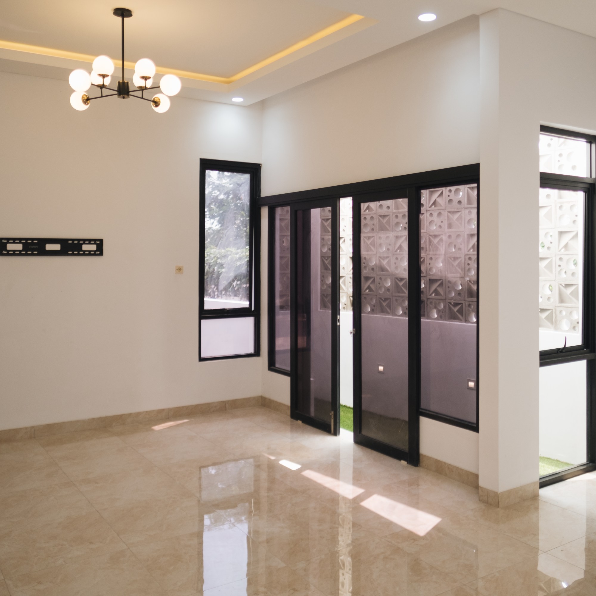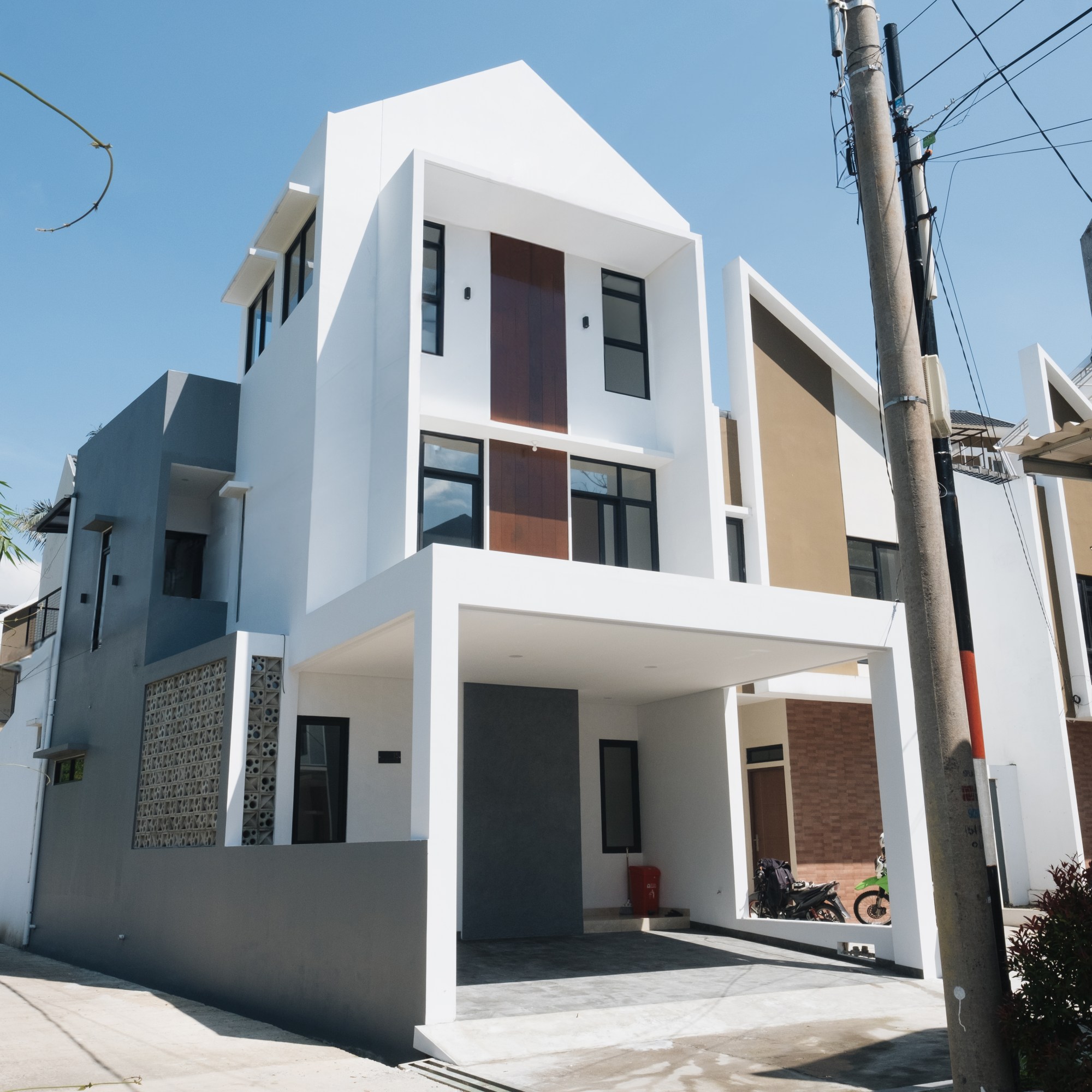 Owner sangat memperhatikan pencahayaan yang baik, dan karena posisi rumah berada di pojok (hook), maka untuk mendapatkan cahaya ideal cukup mudah. Ditambah dengan skylight tempered glass dari rooftop ke ruang makan & dapur lantai 1.