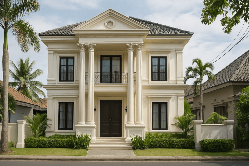 Rumah klasik modern menggabungkan unsur kemewahan klasik dengan sentuhan desain yang lebih sederhana.
