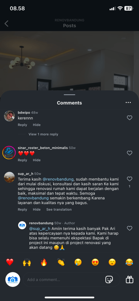 “hasilnya memuaskan, rapi, dan juga sesuai dengan keinginan kami”